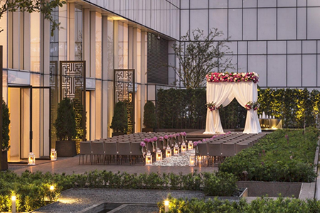 • 由知名設計師季裕棠操刀,融合法式官邸的優雅與巴蜀文化精髓,大堂以鏡面元素營造延伸感,搭配中式浮雕裝飾,彰顯低調奢華。
